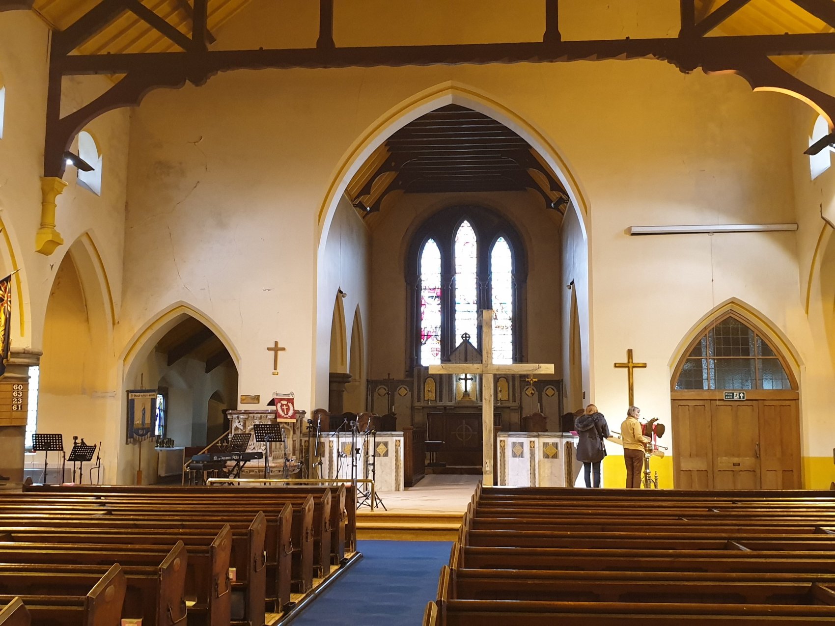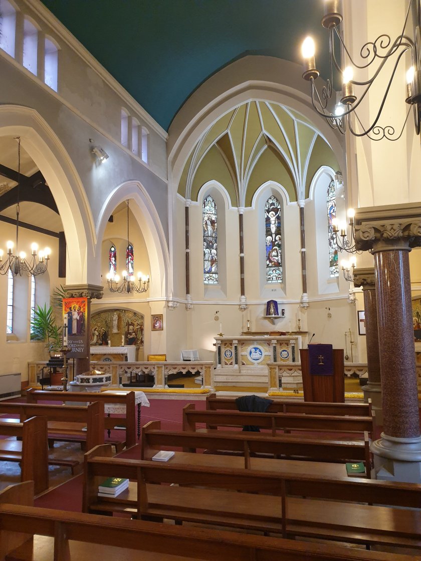 We came to St Paul’s Church; built 1848 by J W Whitaker housing, extended 1868 by J Medland Taylor to accommodate the nearby, growing population. It has an impressively wide interior.