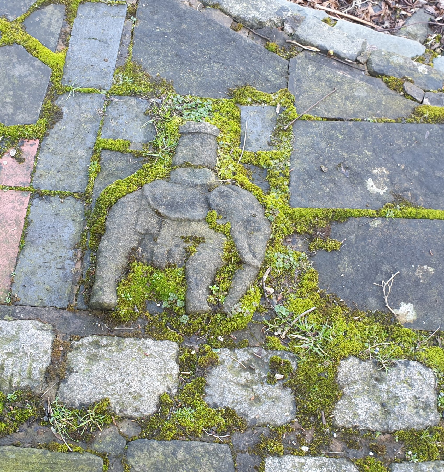 We came to the crossing junction Smithills, Mossbank Way and Halliwell Road. As you turn left onto Mossbank Way there is an artistic feature by the road. It shows the Bolton hills, river,town centre using stones and bricks. There’s even a Bolton elephant