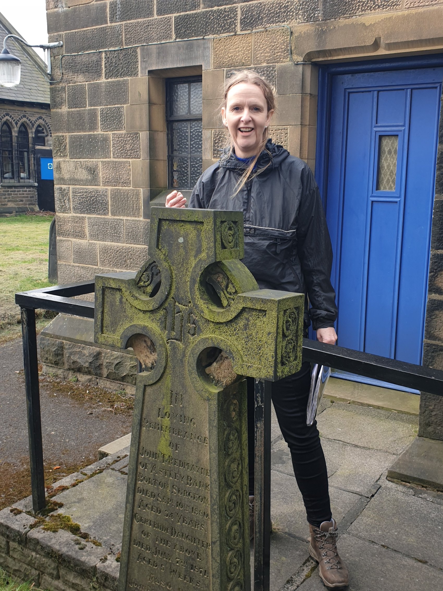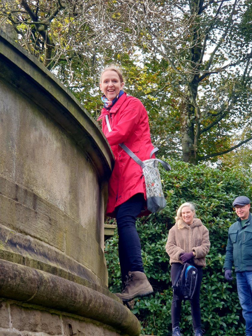 Above; our Guide Suzanne, recounting the story of Dr Redmayne, buried here.
