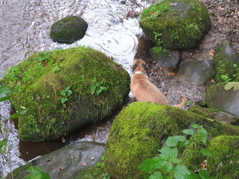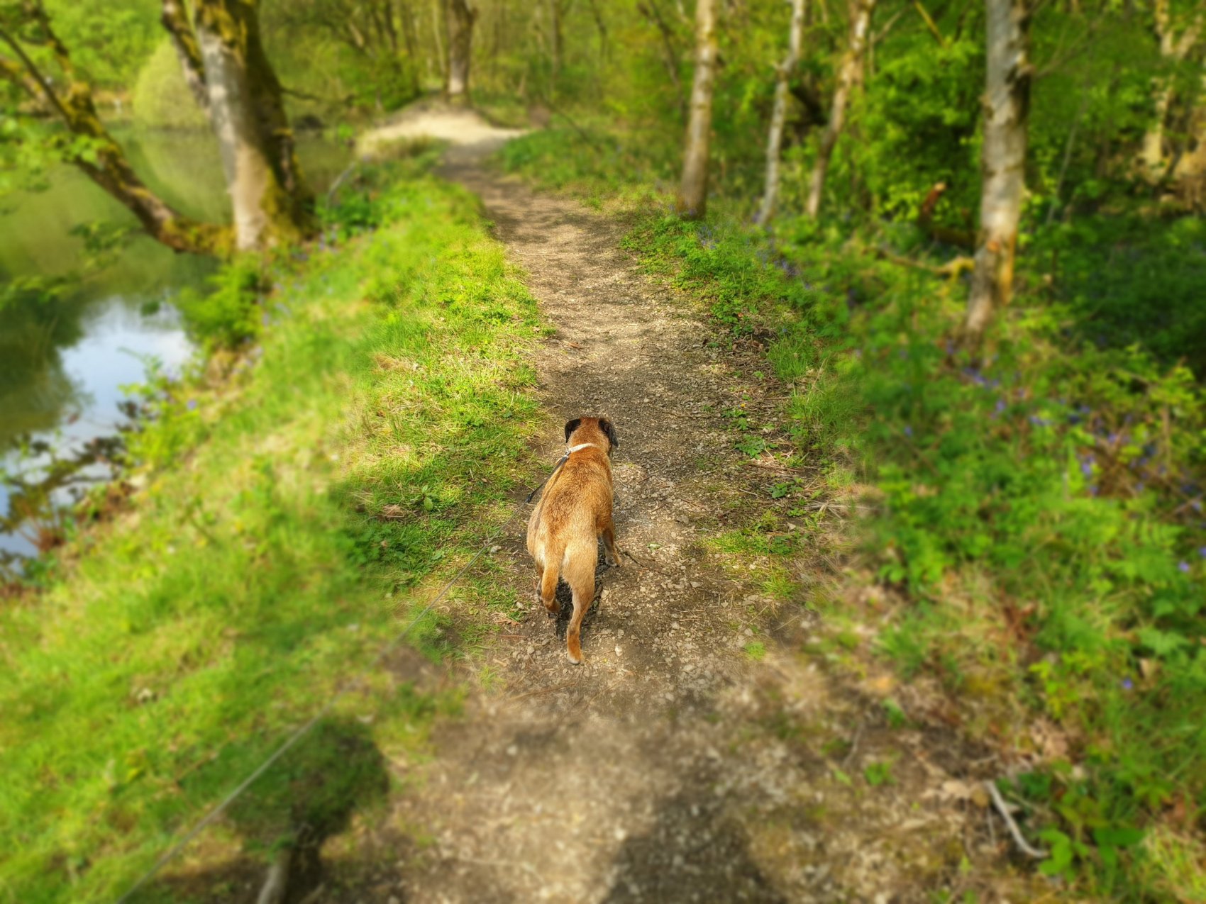 Following the path down. First to run ahead was Harvey the dog who fancied a swim.