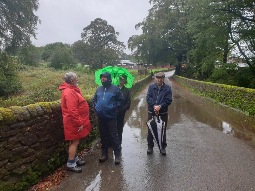 Local historian Terry (striped brolly) told a lovely story about Nat Lofthouse (footballer) running the pub in the 1960s. Unwritten rules for ex-footballers running pubs; passing teams could pop-in and the licensee had to stand them a round (buy). Obviously the road here can take you to Blackburn, so whenever they played at Burnden Park, they stopped here and Nat had to buy them a drink.