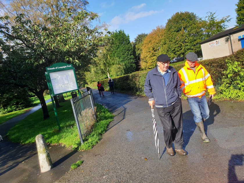 Turning into Bolton Aboretum we bumped into a Council Officer and member of “Friend’s of Longsight Park” marking out spots for new benches in the park. (Above)