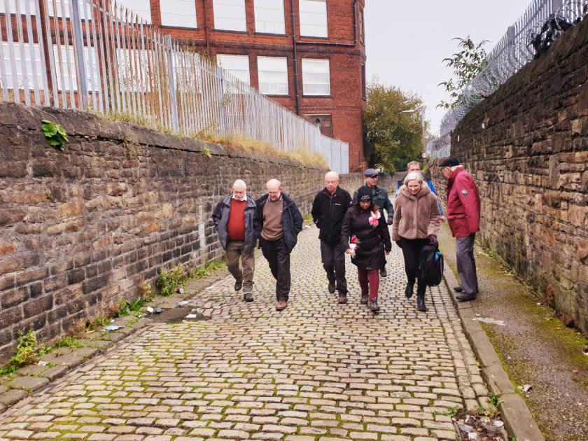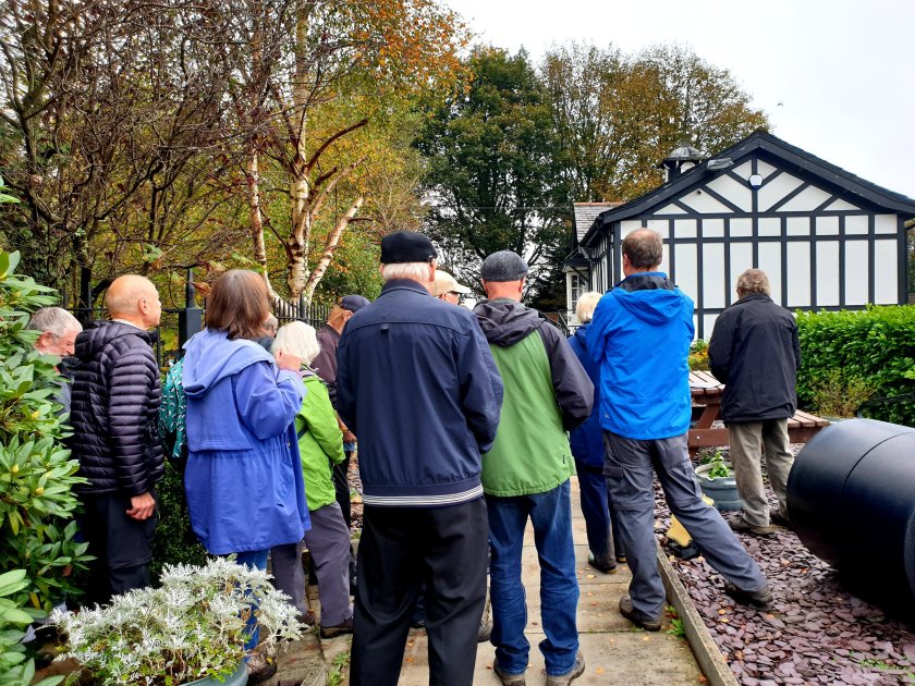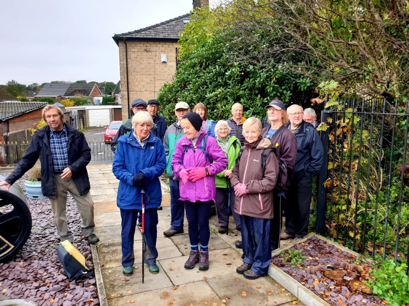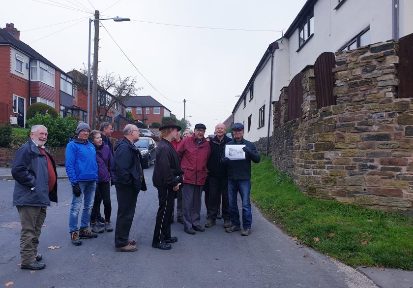 We paused to look at a photo corner Bradshaw Brow and Turton Road from local historian David. Showing Scowcrofts corner shop, the family were philanthropists. And would you believe it…amongst the group (above) we had a member of the Scowcroft family on our tour!