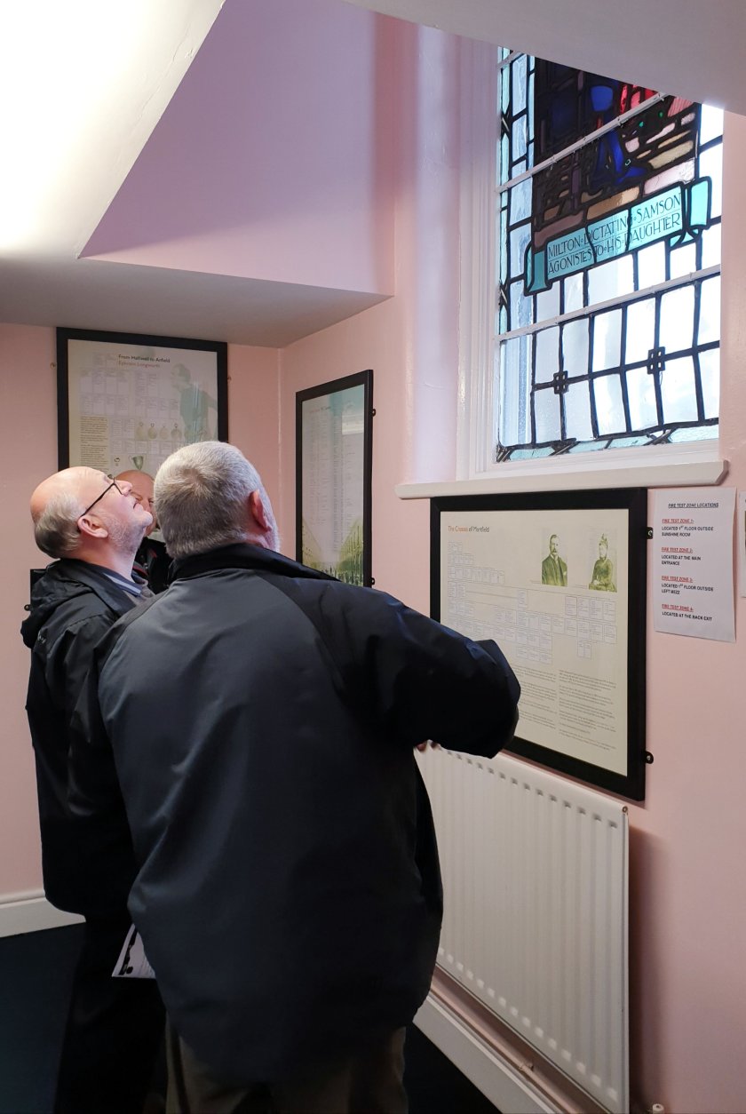 We stepped inside Halliwell U-Can Centre, we were greeted by Fida from Bolton Council- he explained about the services/groups at the U-Can and the group wandered around looking at the stunning stained glass windows and history notice boards.