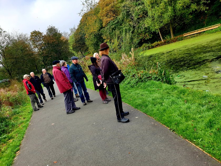 We started off with a brief tour inside Smithills Hall.The weather was rather damp, we agreed a different route than originally planned due to the weather.We took the bridge by the lake, down to the coaching house.