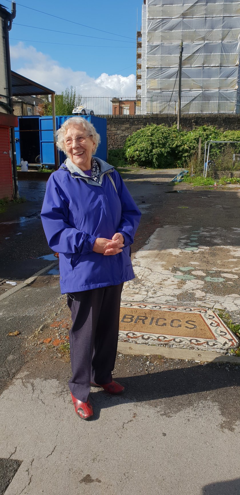 A member of our group Phyliss paused at the remains of a tiled doorway on Higher Bridge Street (between Slater Street & Egyptian Street) The tile says “Briggs” however she remembers the shop as Hadfield’s bakery. Here she first met her husband; he was serving behind the counter (how romantic!)